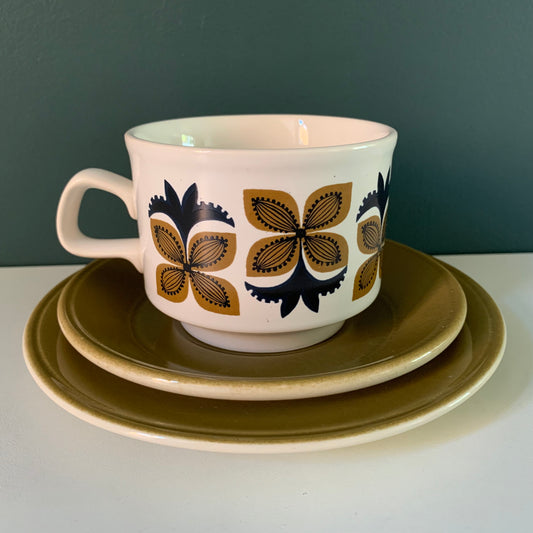 Staffordshire Potteries Ceramic ‘Trio’ Tea/Coffee Cup & Side Plate British English 1960s 1970s Gifts Presents