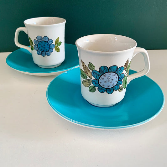 J&G Meakin Topic Blue Ceramic Espresso Cups & Saucers British English 1960s 1970s Gifts Presents
