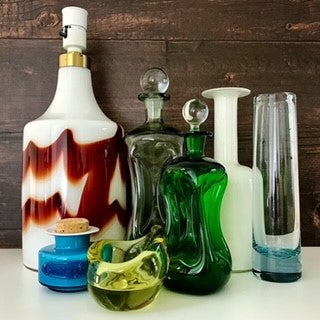 Vintage Scandinavian Kluk Glug Pinched Glass Decanter Bottle Carafe