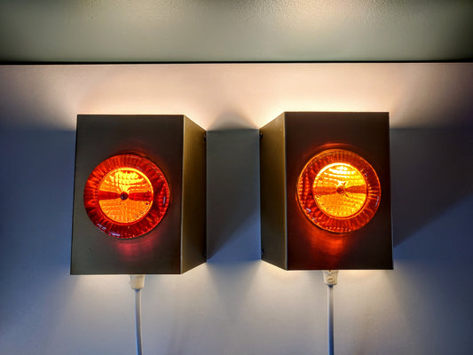 Pair (2) Danish Swedish Orange Glass Sconce Wall Lamps Lights Retro Vintage