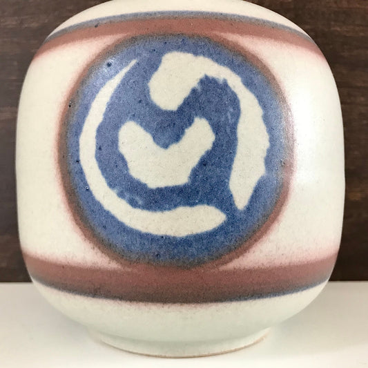 Johgus Pottery Danish Hooped Blue Ceramic Vase 1960s 1970s Fat Lava Vintage Retro Scandinavian