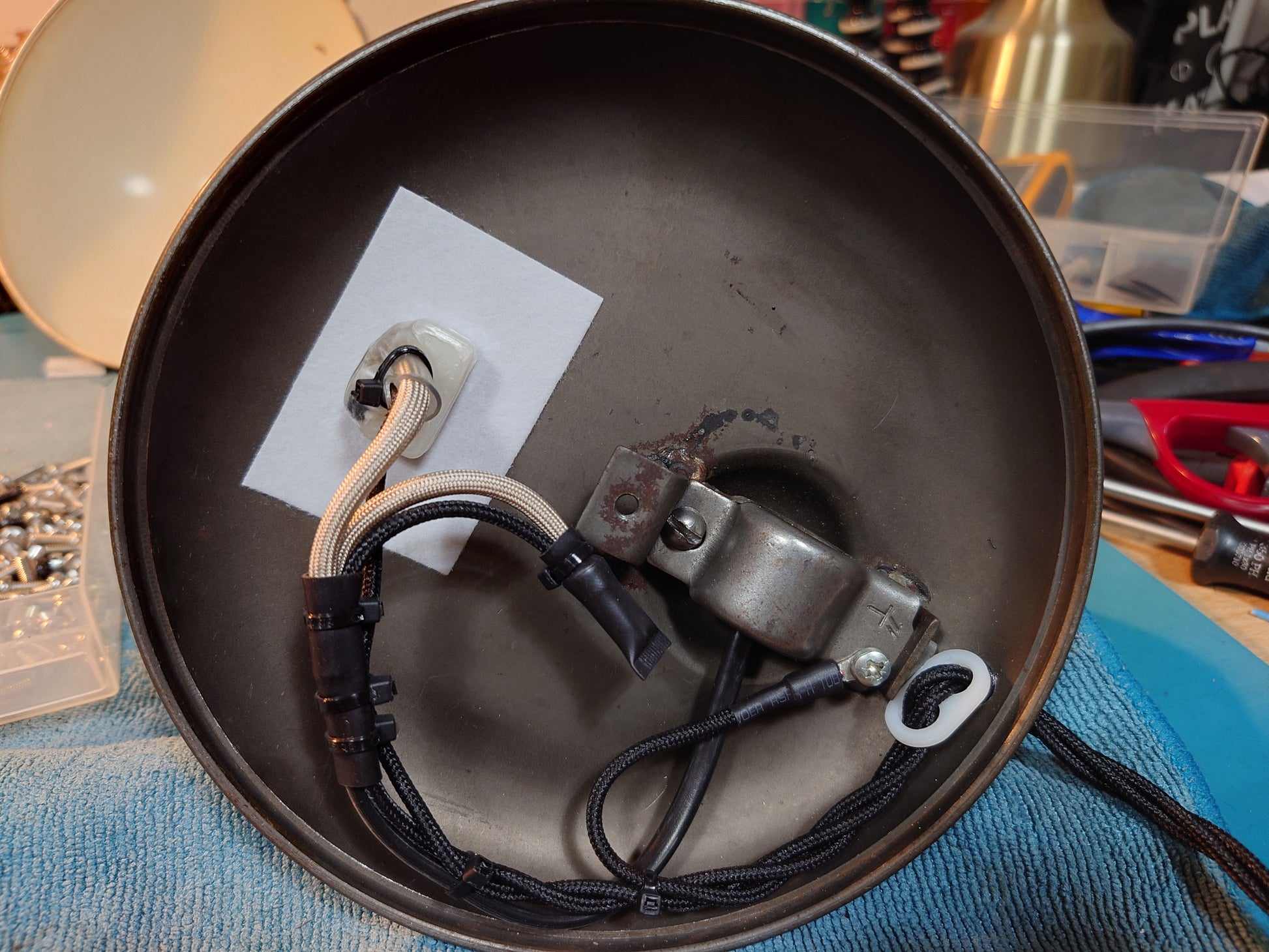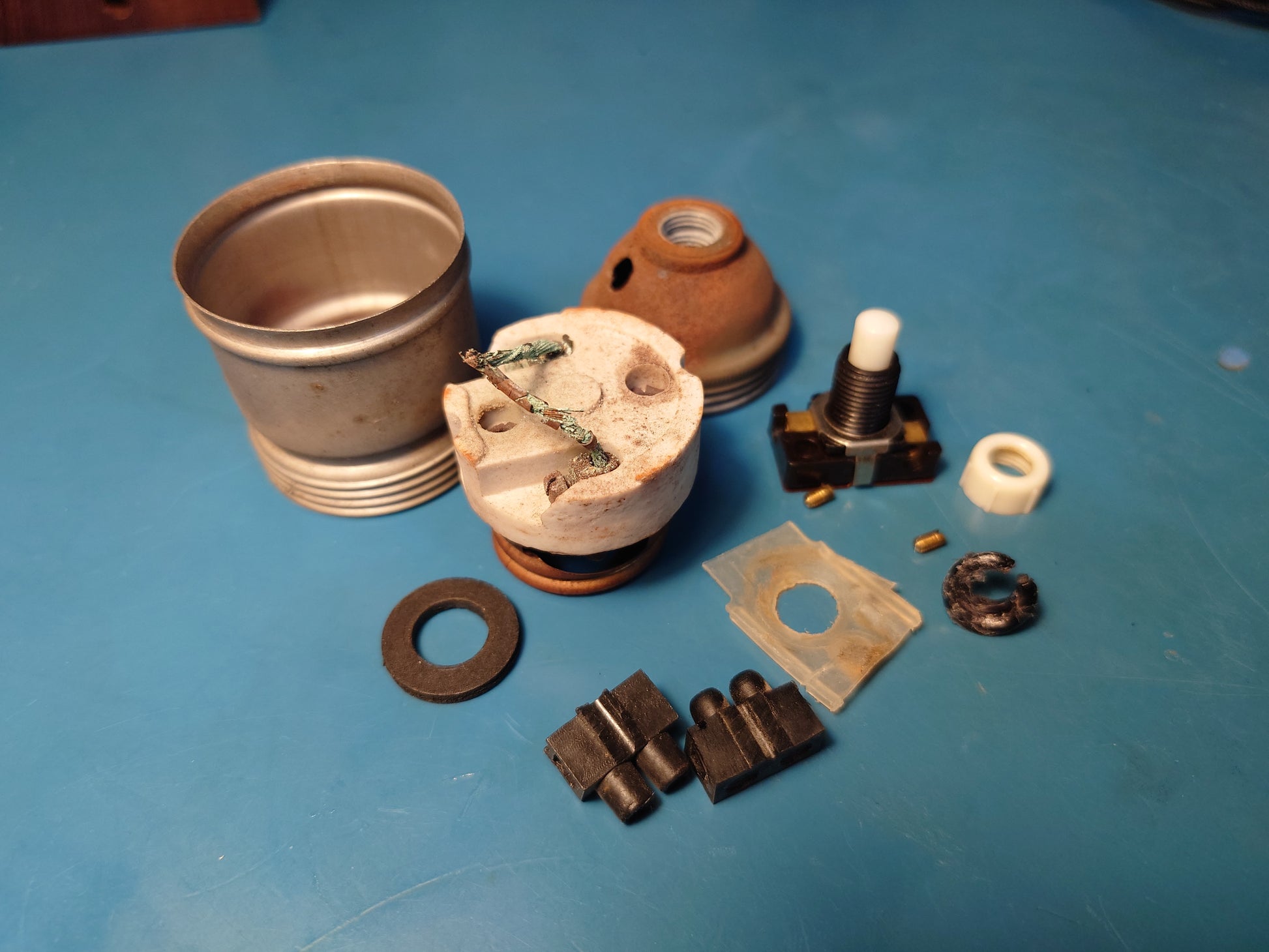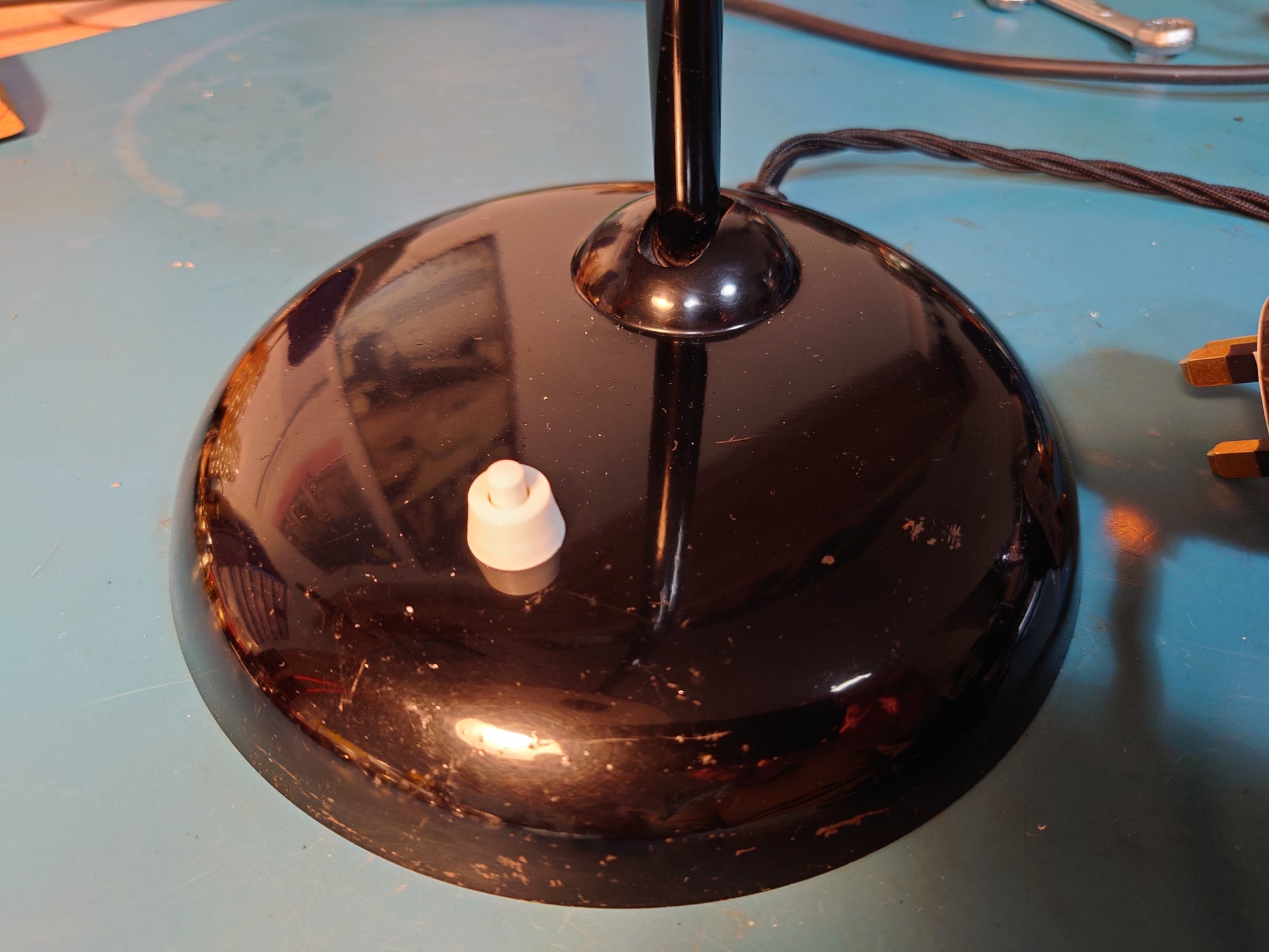 - Original plastic grommet to prevent cable fray where it exits metal base had deteriorated. I customised an old part I had in stock to fit the thread.