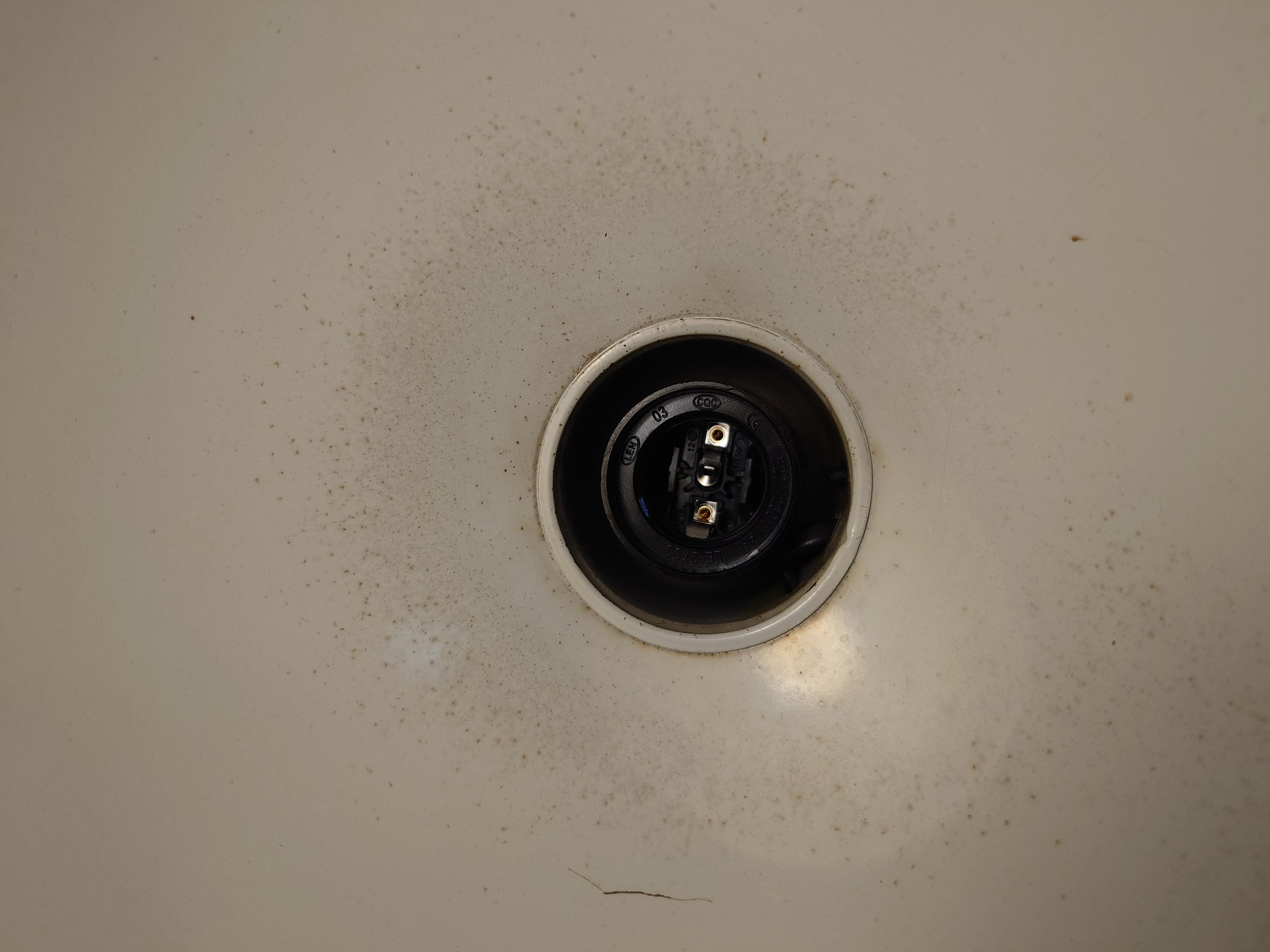- Metal lampholder needed to be earthed but wasn't capable of it, was also corroded. Replaced with black E27 lampholder.