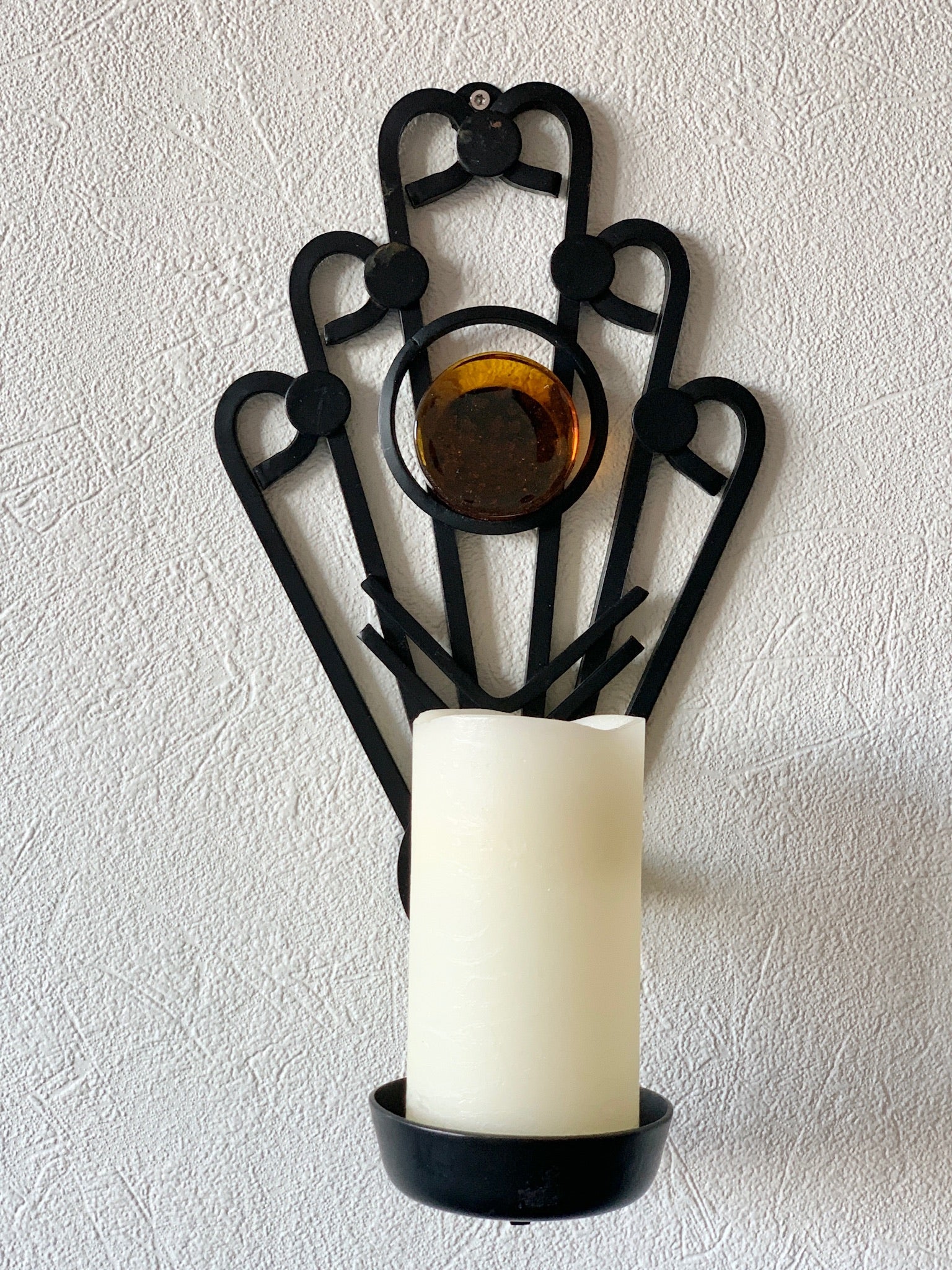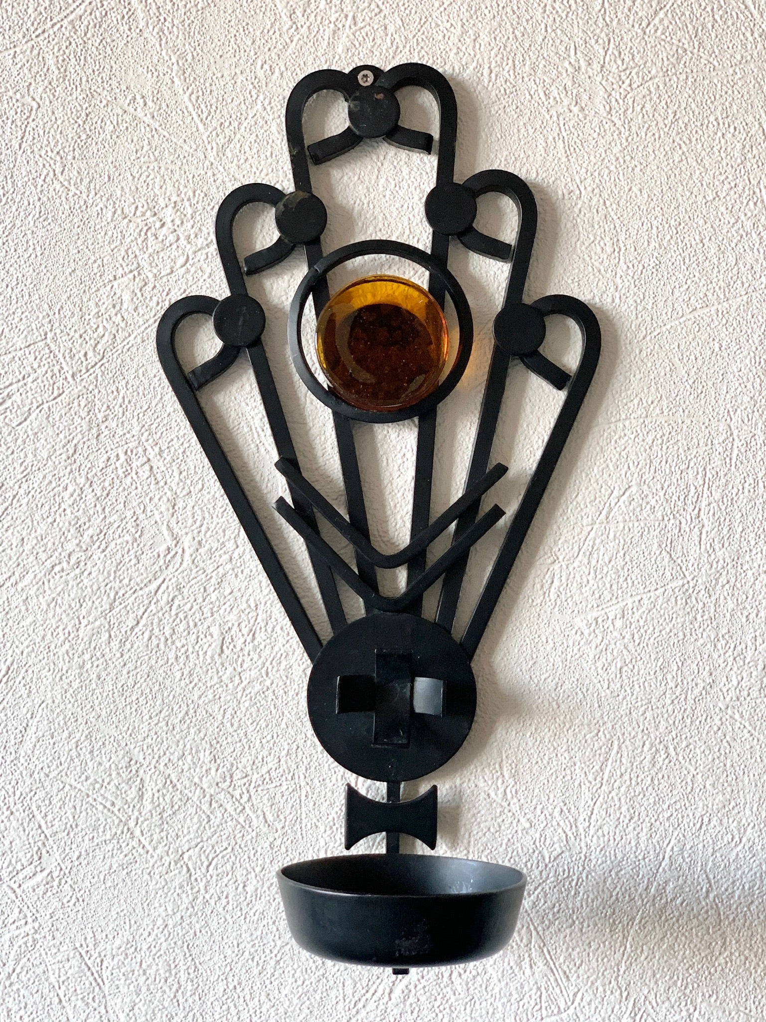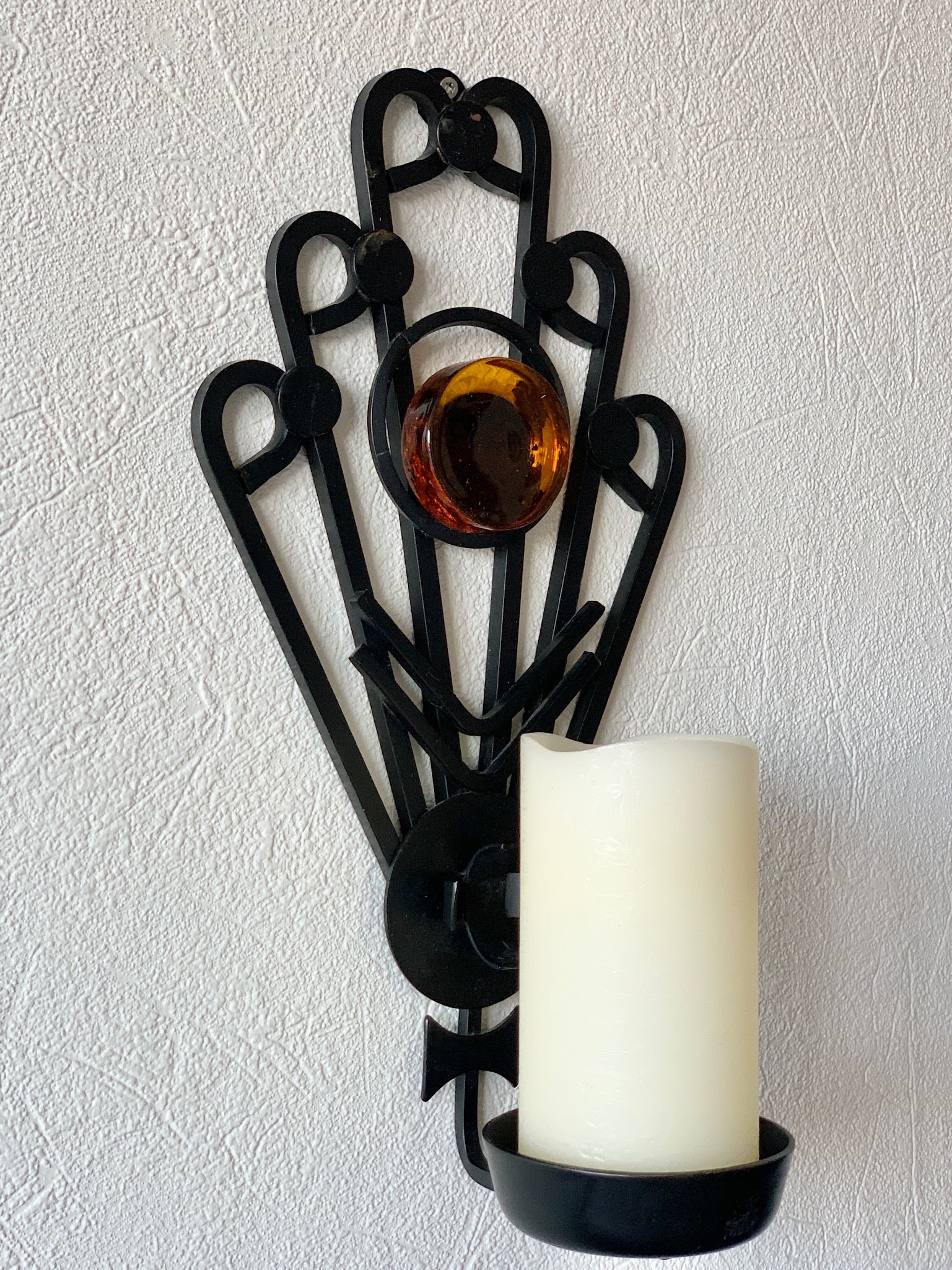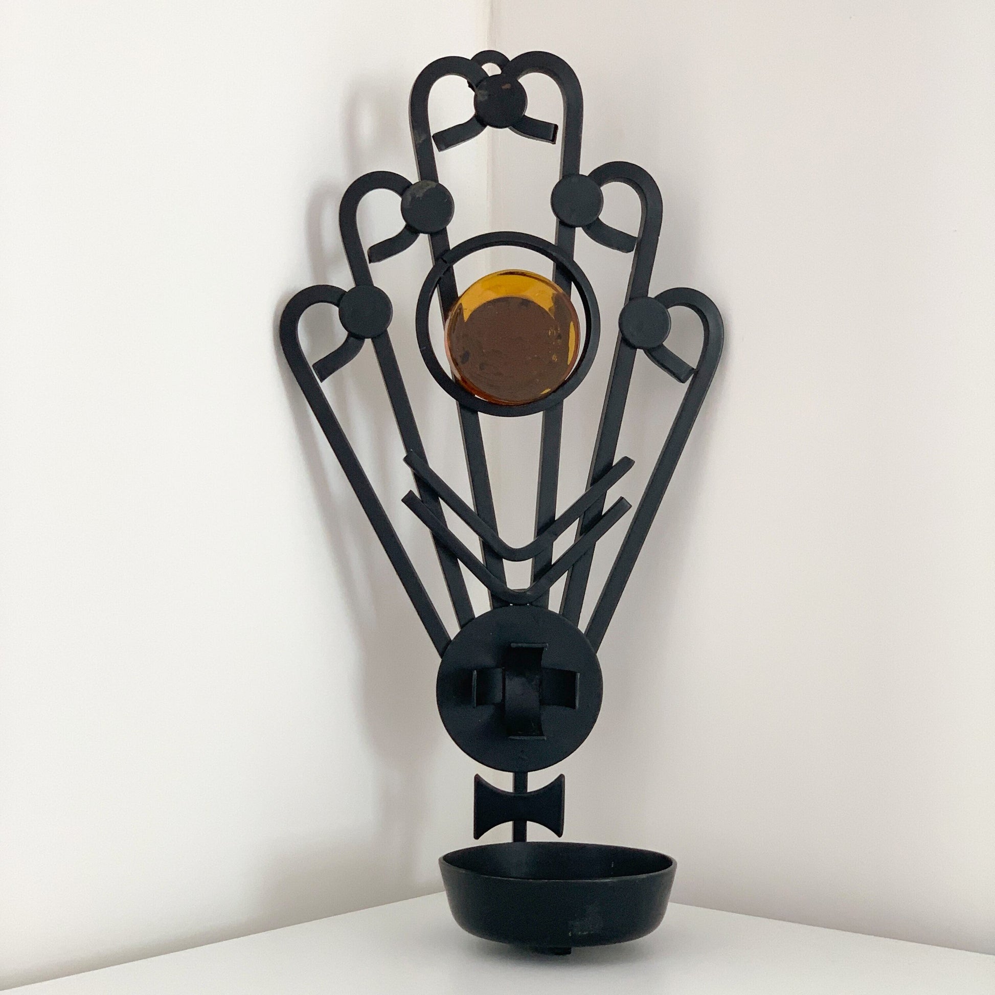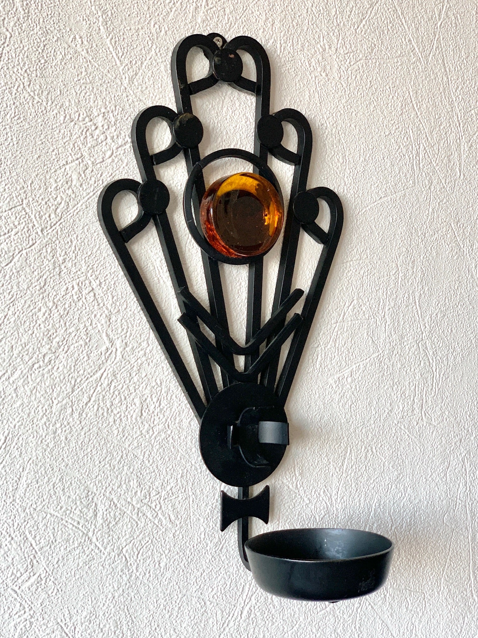Dantoft Danish Iron Glass Wall Relief Candle Holder Sconce 1960s