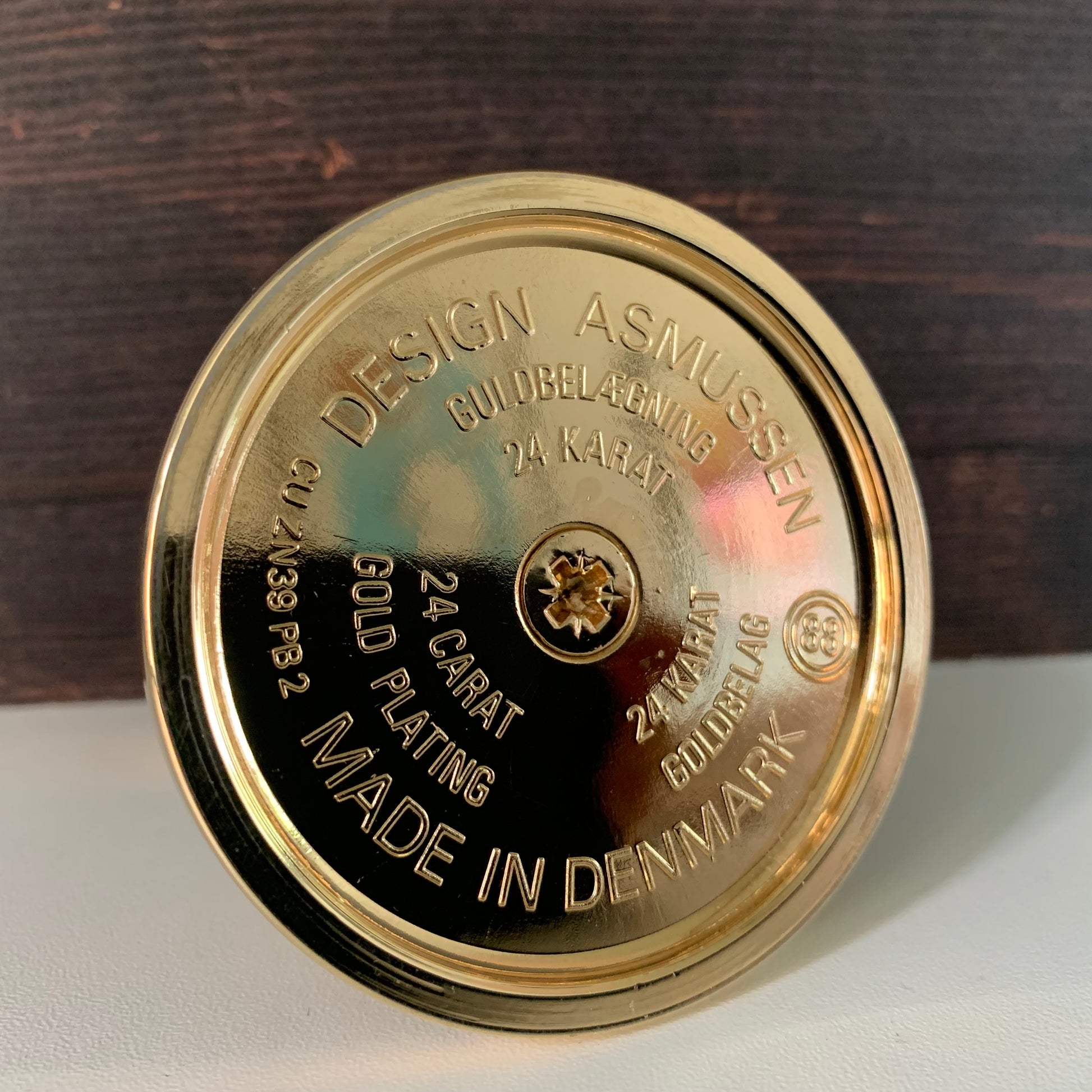 Makers details, '24 carat gold plating' and 'Made in Denmark' embossed beautifully on its base.
