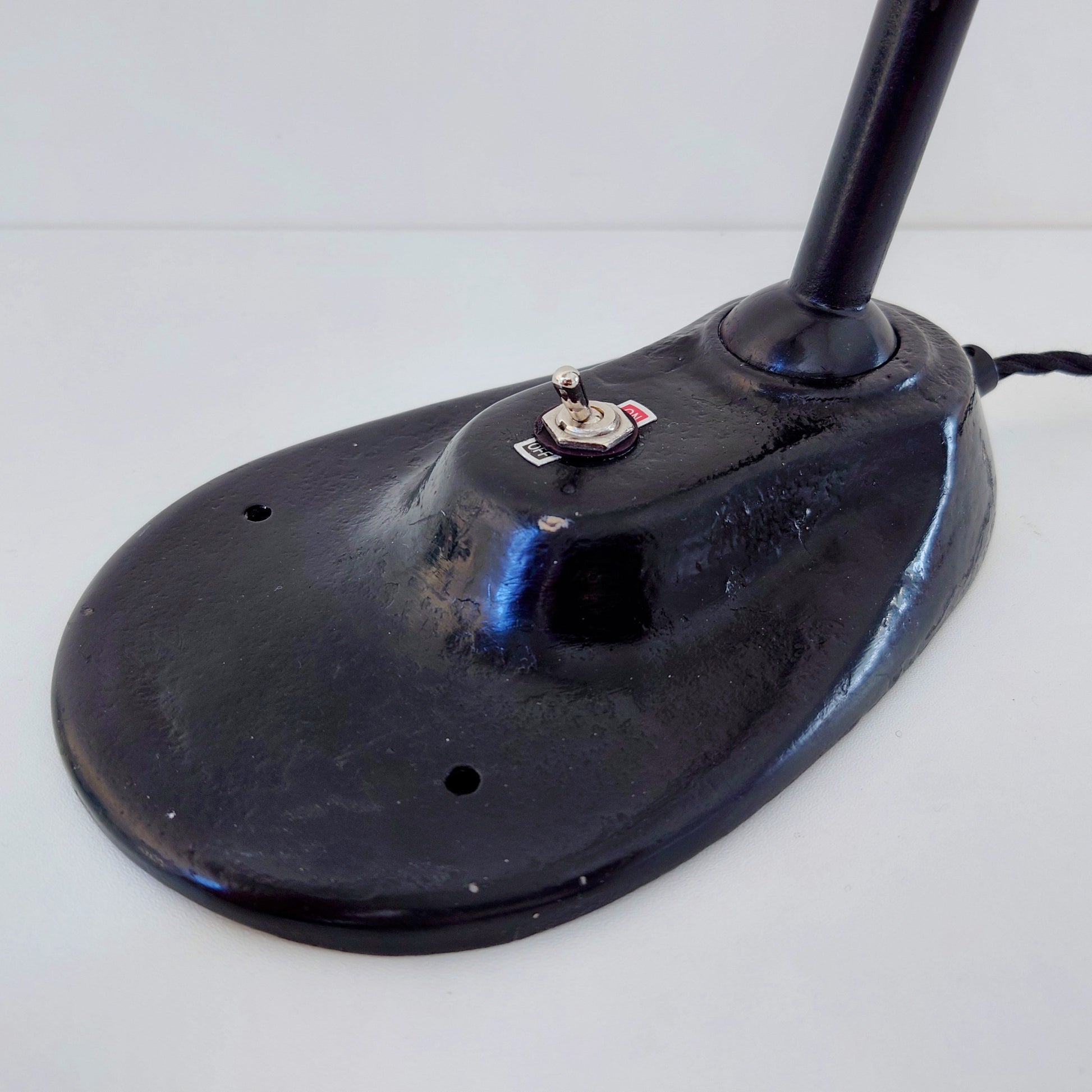 The screw holes in the base indicate it was designed as a workshop rather than office lamp.
