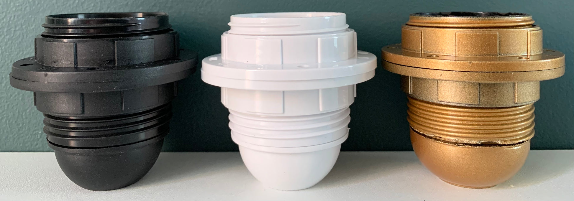 Lampholders: the most frequently used new lampholders are E27 in black or white plastic with gold available as a special order item.