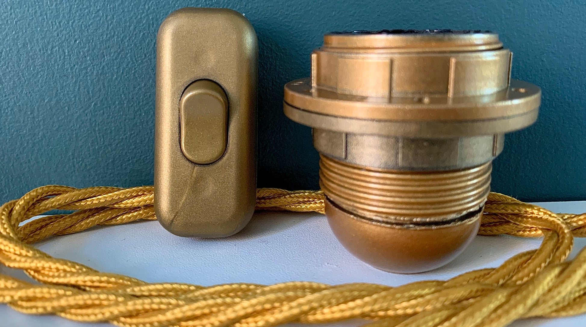 For table lamps we will rewire your lamp using high quality vintage style braided cable in your choice of black, dark brown, dark blue, (all lamps) light blue, old gold and burnt orange (only those lamps that don't have metal lamp holders/fittings).