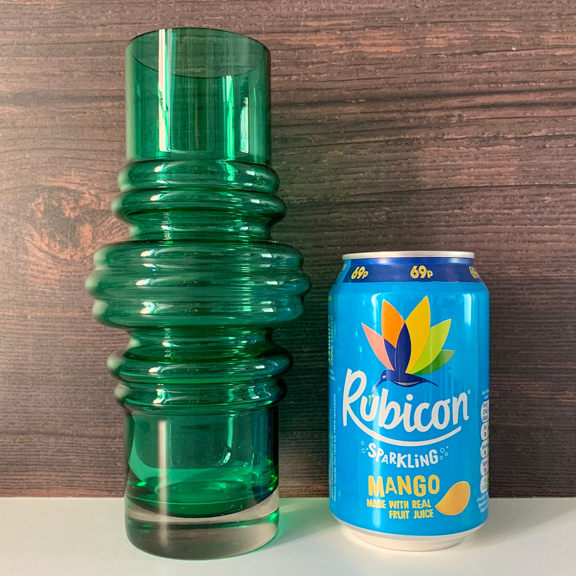 Green Finnish handmade vase with cool mid century styling.