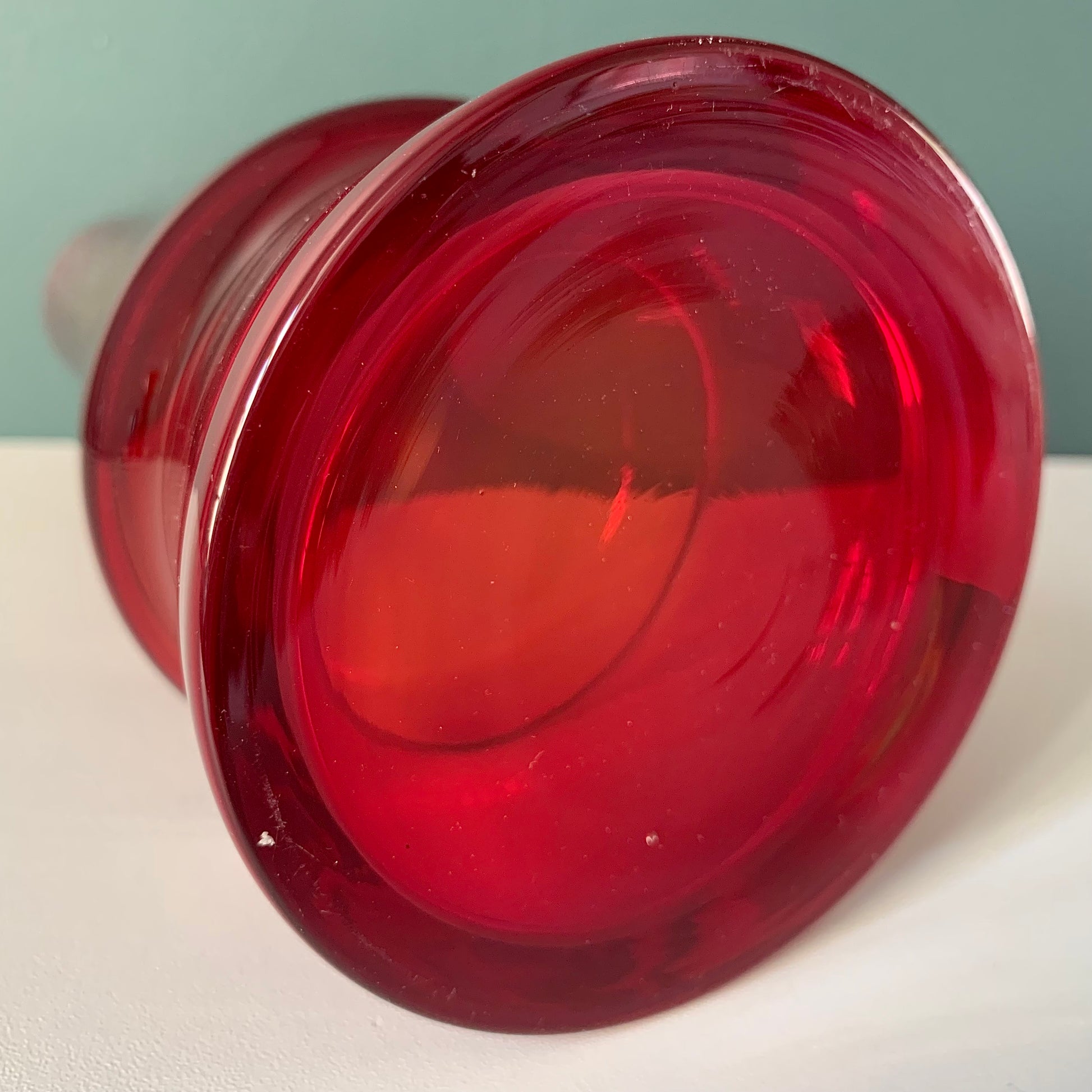 Riihimaki Mid Century Red Glass Chimney Vase Scandinavian Finnish Design
