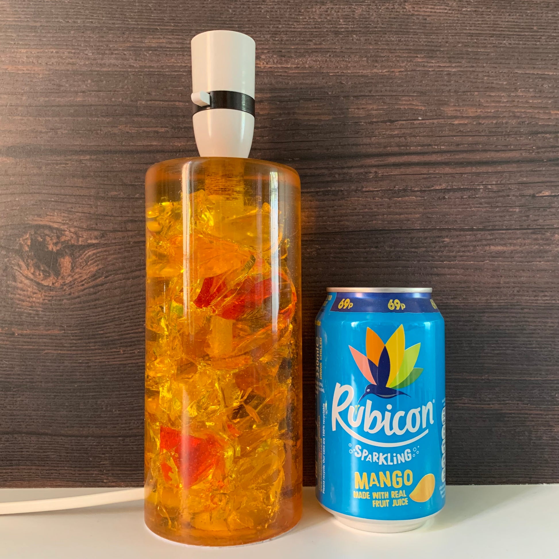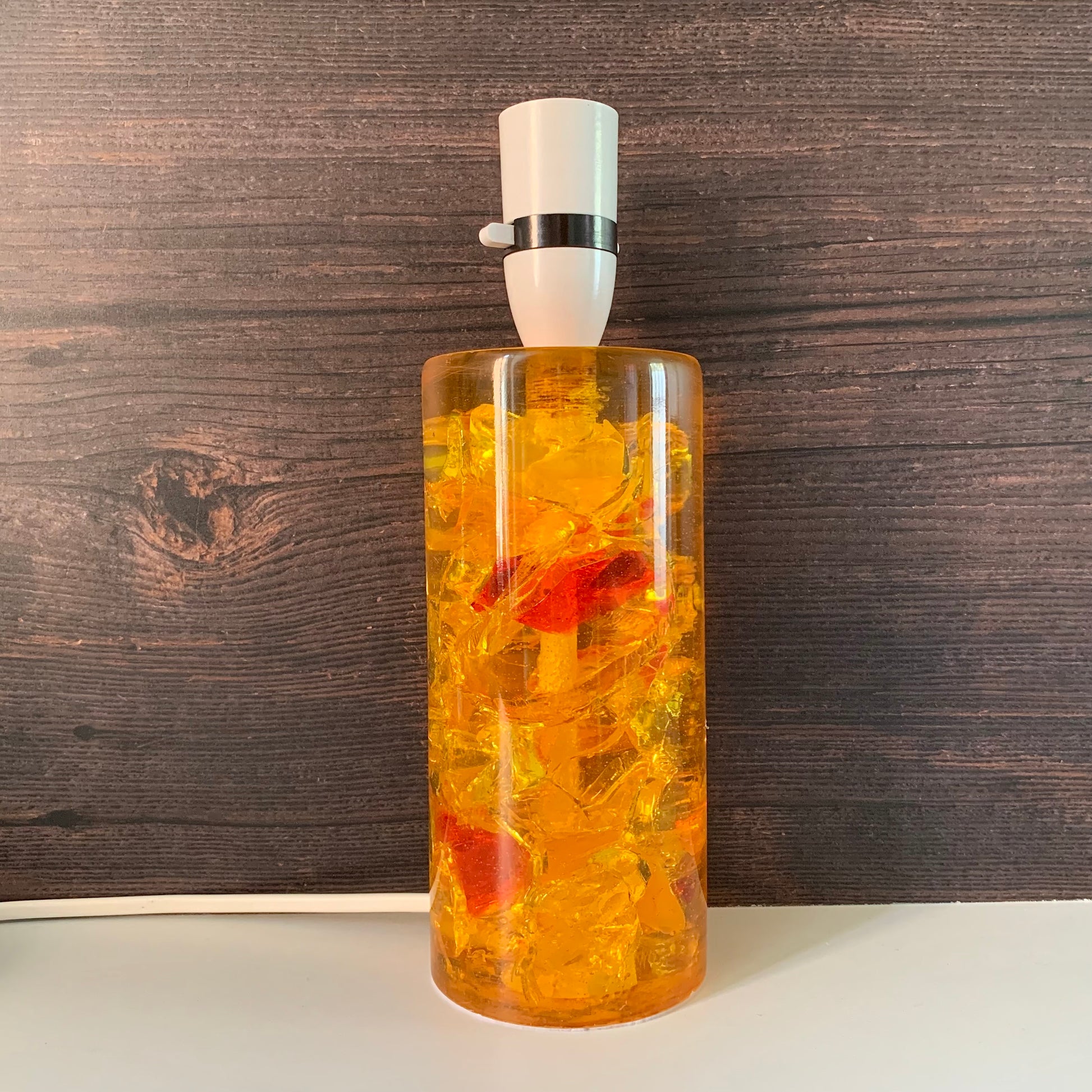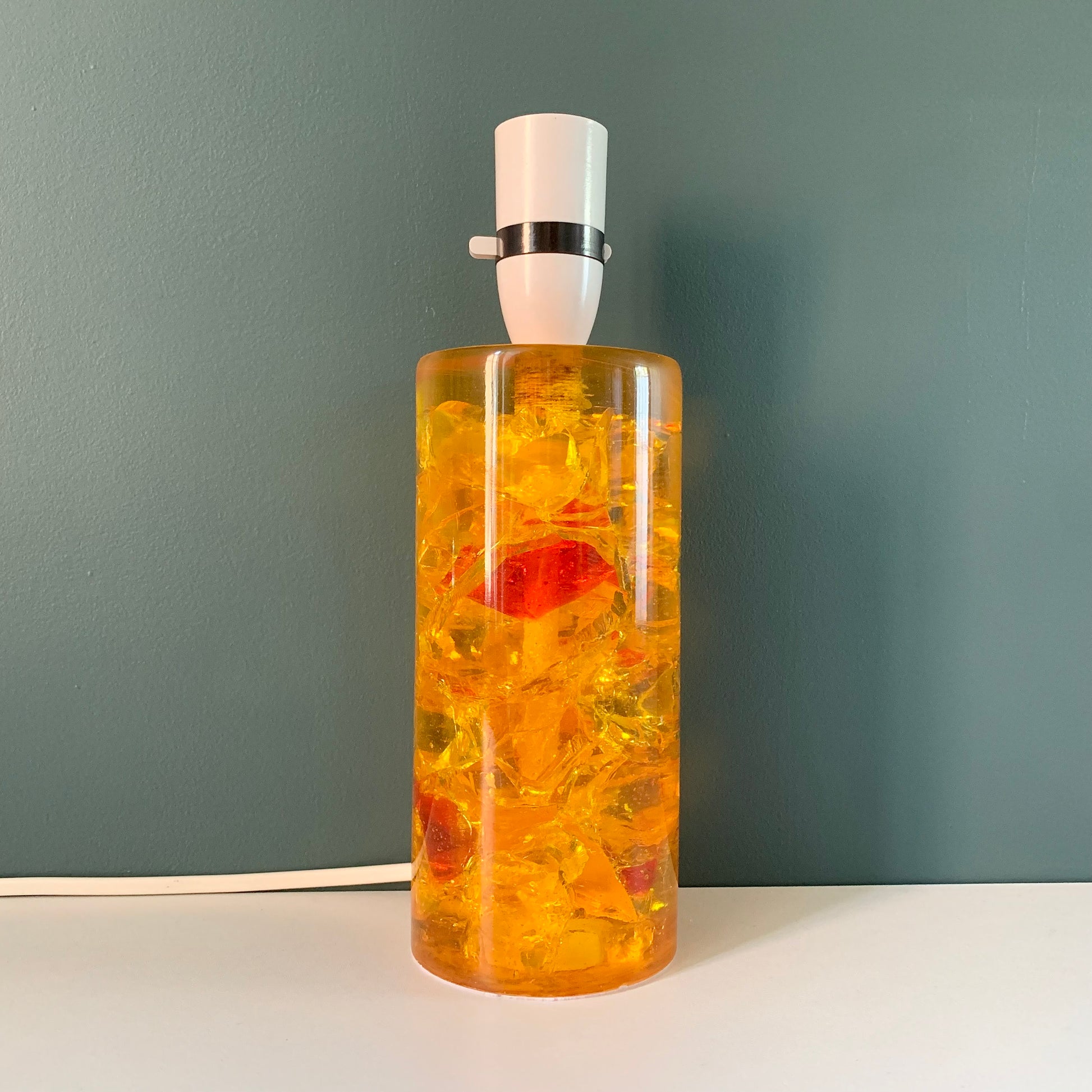 Shattaline British Yellow Orange Table Lamp Cracked Resin Crushed Ice Vintage Retro Atomic Era Shatterline